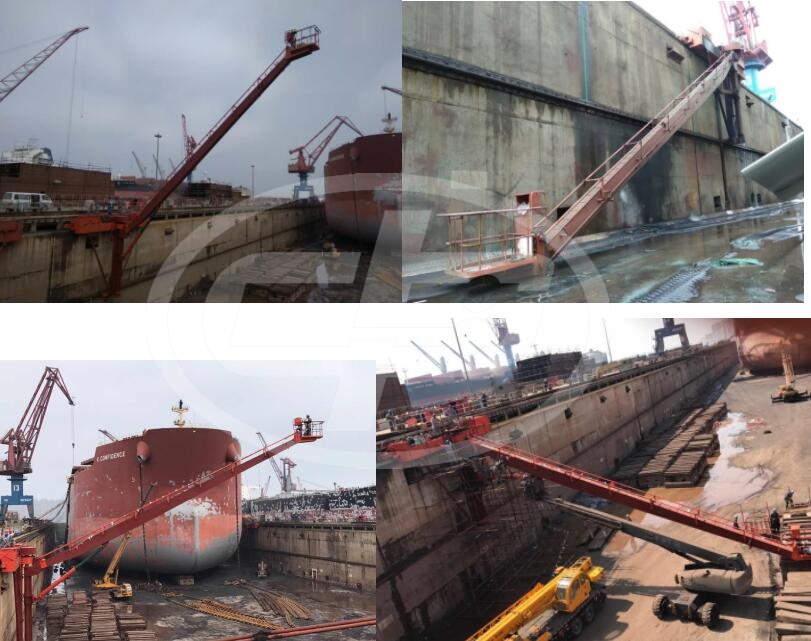 ⑤可以沿塢壁軌道行走,作業面大,船進塢后未排完水時,塢壁作業車即可工作,如高壓水清洗,大大提高船塢效率,縮短塢期;